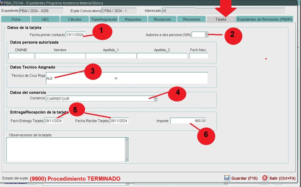 Una vez en su ficha, de habérsele entregado tarjeta alguna, nos ofrecerá la pestaña TARJETA, la cual pulsaremos.