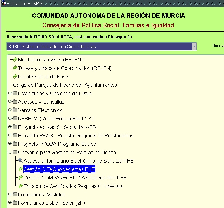 Para ello, tendrán acceso a la Plataforma SUSI, y dentro de su gestión podrán acceder al menú de CONVENIO PARA LA GESTION DE PAREJAS DE HECHO.