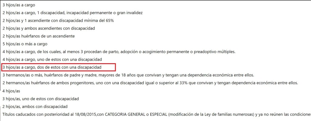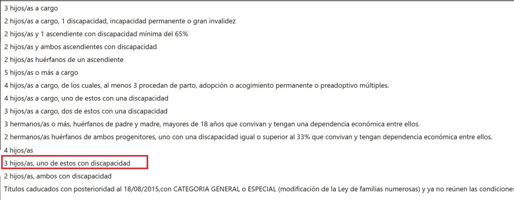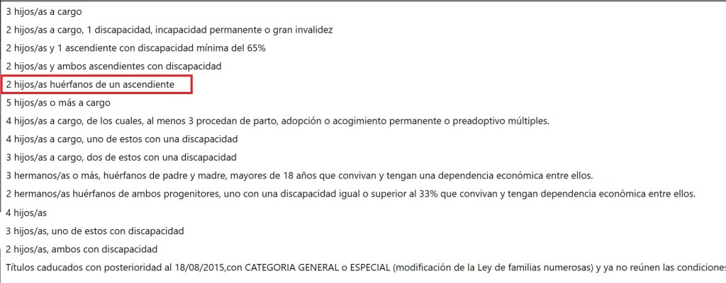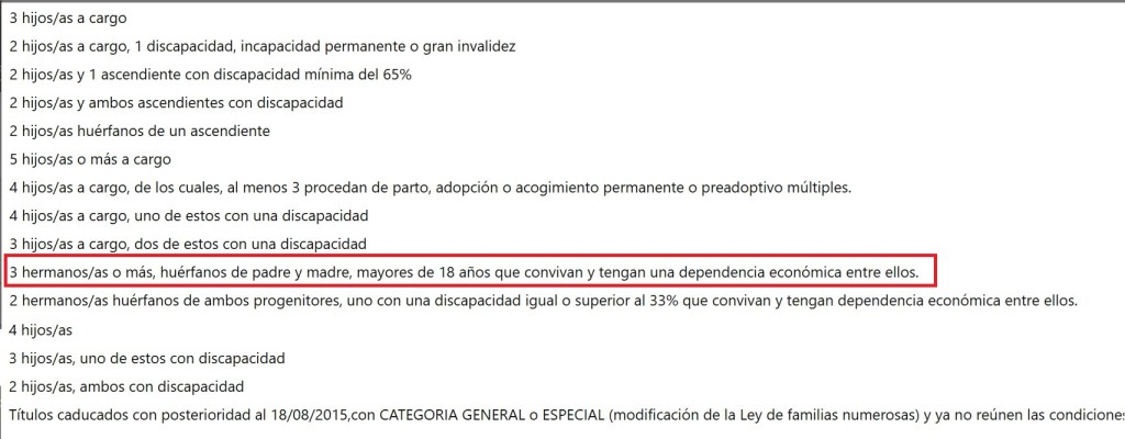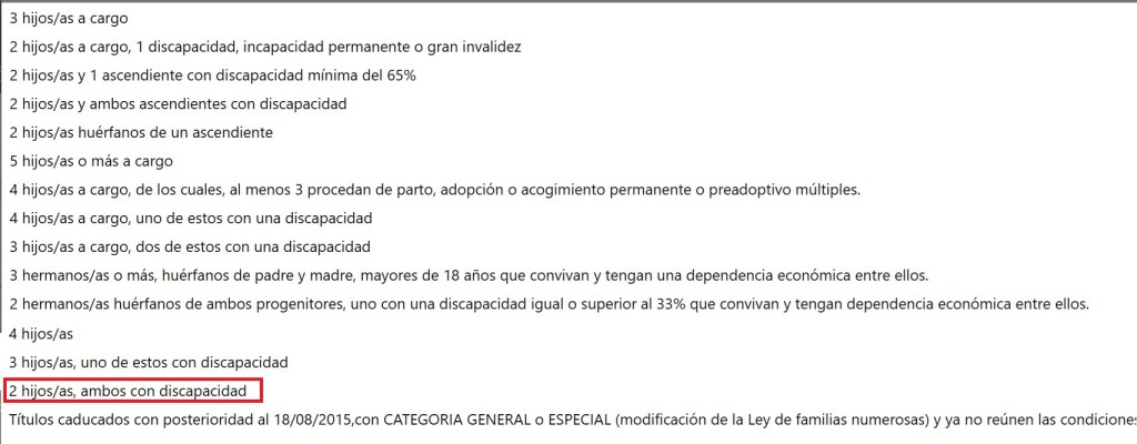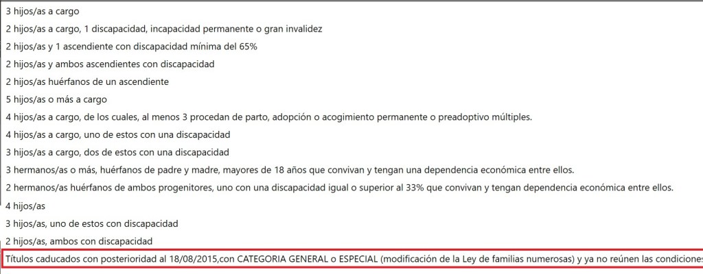 Caso 15.Títulos caducados con posterioridad al 18/08/2015, con CATEGORÍA GENERAL o ESPECIAL (modificación de la Ley de familias numerosas) y ya no reúnen las condiciones.