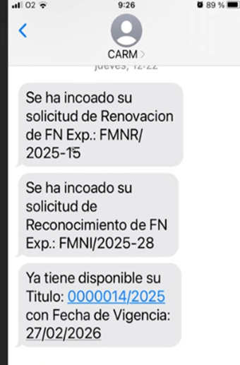 En el nuevo entorno de OAS y tal y como va explicado en el manual cuando se produzca un cambio de NIE por DNI, será necesario comunicar ese cambio dato a través del Procedimiento 3119 de la Sede Electrónica de la CARM antes de renovar el título de FN.