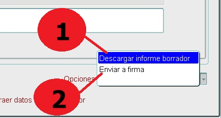 1. Descargamos el informe en modo PDF en nuestro ordenador para revisarlo antes de su envío a firma. Una vez hayamos comprobado que el borrador bajado es el informe deseado, procederemos al segundo paso.