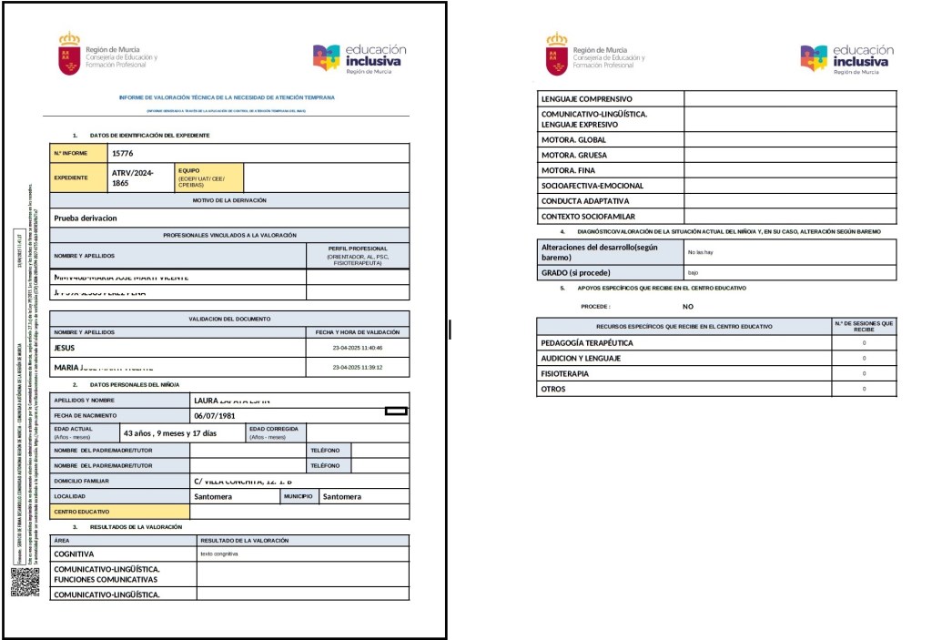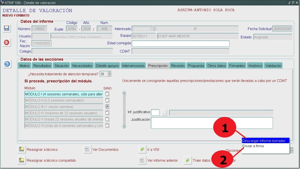 5. Al subirlo, el sistema entiende que el informe ya se ha realizado, dejando el informe como FIRMADO y enviando el informe al sistema de gestión de Atención temprana para que continué con su tramitación.