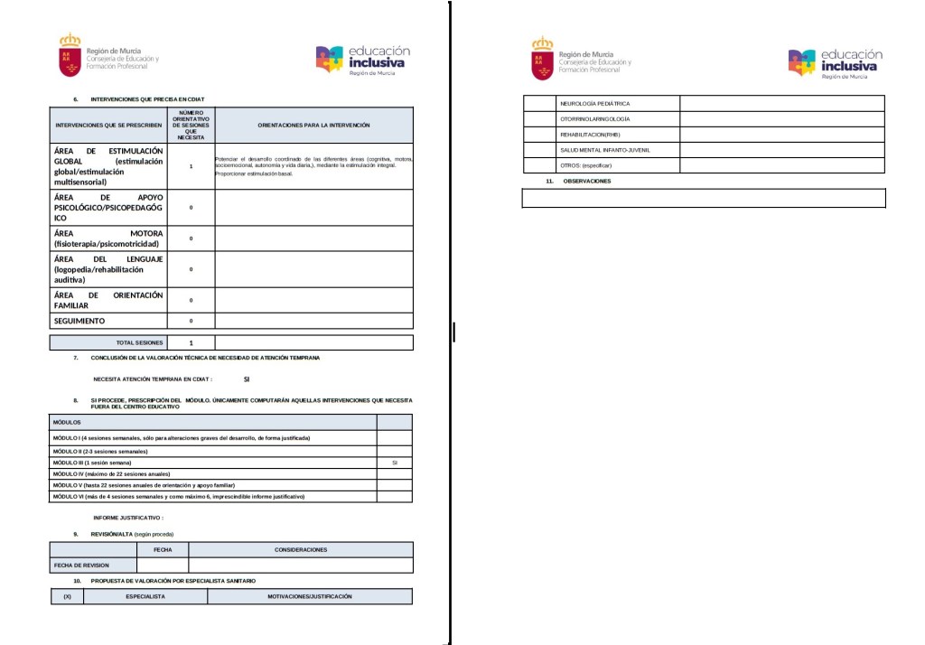 DECIMO, el expediente valorado queda en espera de que exista el hueco de sesiones para que el niño/a reciba la ayuda indicada, en el momento que se produce el hueco suficiente, se emite el INFORME PROPUESTA, la RESOLUCIÓN y se notifica al interesado.
