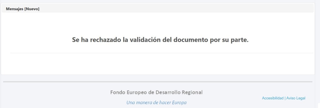 Pulsaremos este botón de no estar de acuerdo con el documento enviado a validar o darle nuestro acuerdo.