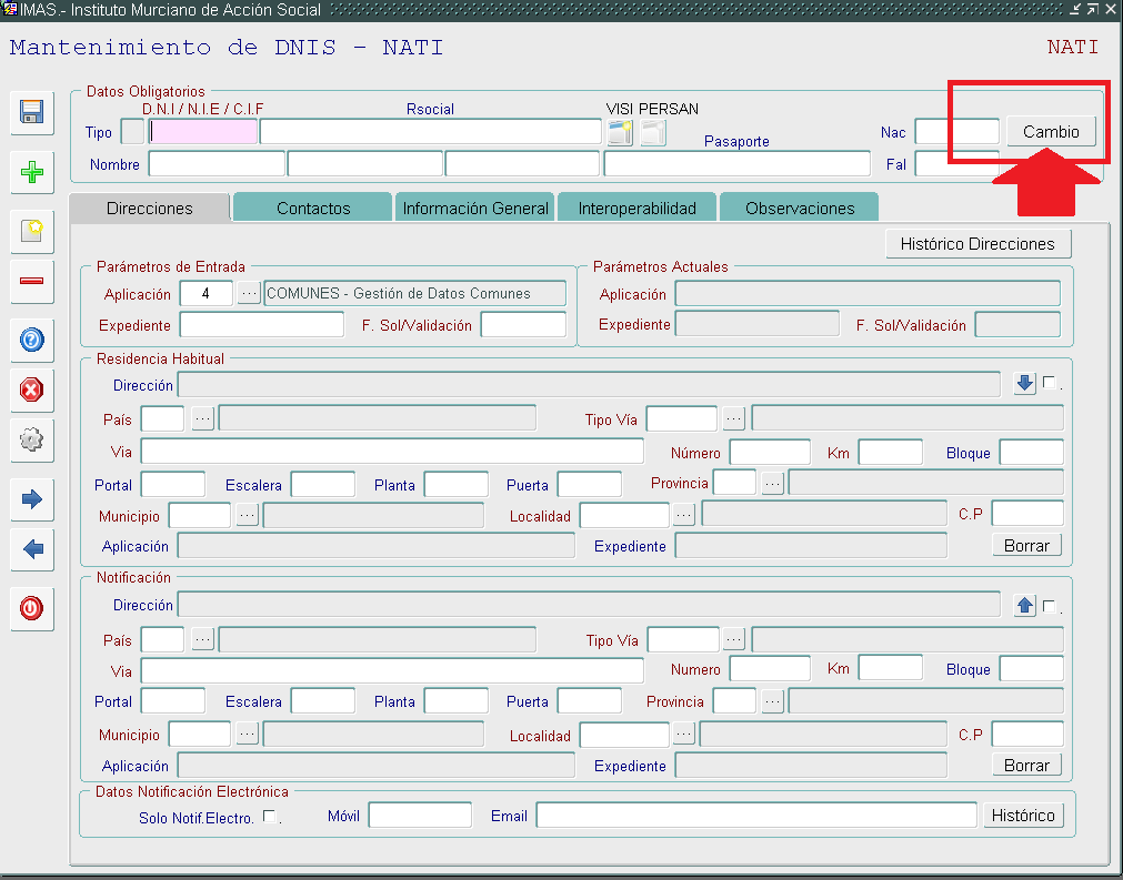 En el aplicativo CAMBIOS, dentro de las plataformas del IMAS y de la Consejería de Política Social, Familias e Igualdad.