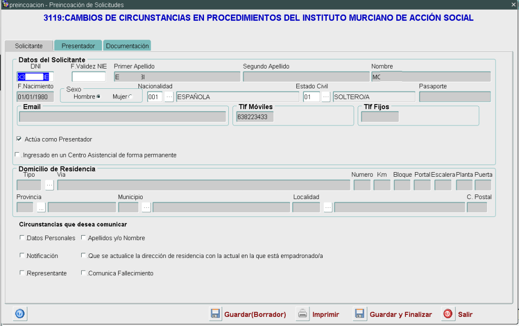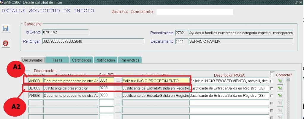 | AN998 | 0001 | Solicitud Interesado | A1. Documento del interesado firmado por él pero sin el sello de presentación por registro. Solo lo encontraremos así si no encontramos un documento DI005, ya que el sistema del registro está cambiado poco a poco en cada oficina. |