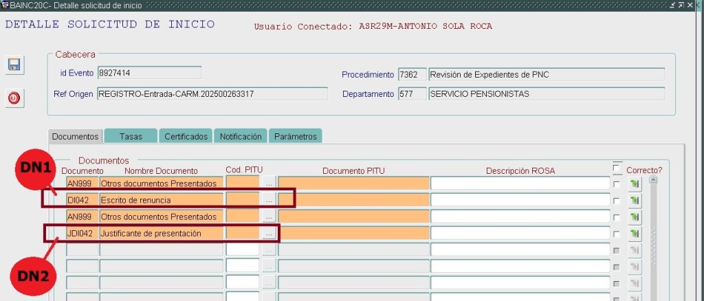 | DI042 | 0001 | Solicitud Interesado | DN1. Documento del interesado firmado por él pero sin el sello de presentación por registro |