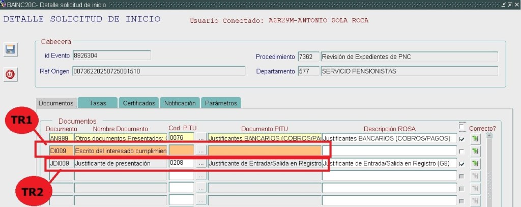 | AN998 | 0001 | Solicitud Interesado | Documento del interesado firmado por él pero sin el sello de presentación por registro. Solo lo encontraremos así si no encontramos un documento DI005, ya que el sistema del registro está cambiado poco a poco en cada oficina. |