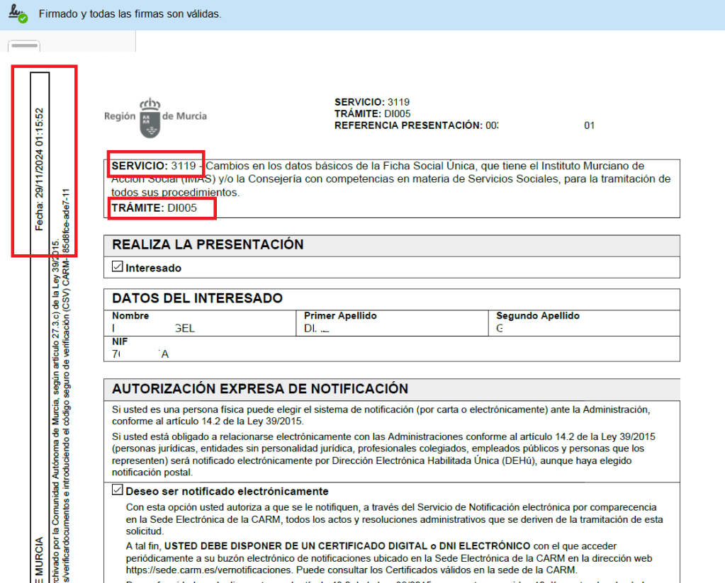 | DI005 | 0001 | Solicitud Interesado | B1. Documento del interesado firmado por él pero sin el sello de presentación por registro |