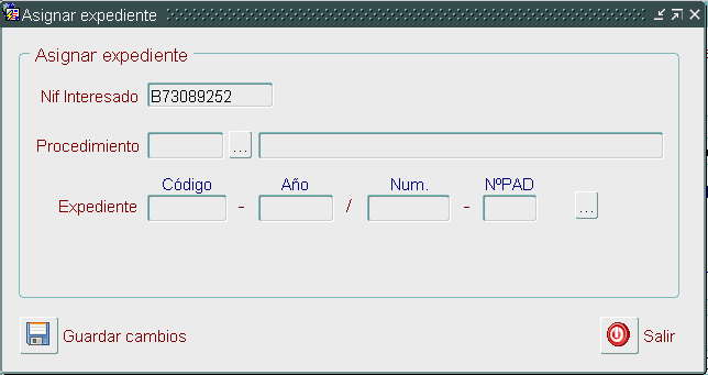 Al codificar con un 0319 o al no haber ni un solo documento que esté codificado con el 0001, el sistema entenderá que se trata de un Trámite y por consiguiente nos solicitará el expediente del interesados sobre el que queremos anexar esta documentación.