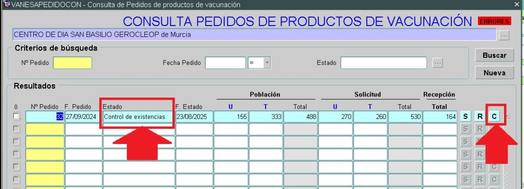 Concluido el proceso de finalizar las recepciones, encontraremos que nuestro pedido inicial de campaña anterior se encuentra en la situación de CONTROL DE STOCK.