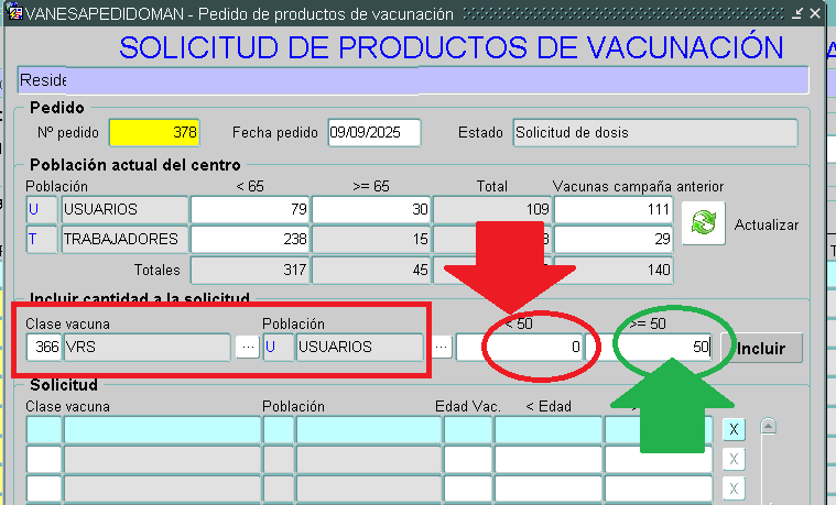 Este nuevo producto solo se inocula en residentes que sean personas de 50 años o más. Por lo que cuando seleccionemos este producto debemos asegurarnos de no pedir ninguna dosis para menores de 50 años.