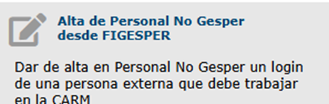 Para poder dar acceso a estos trabajadores externos es necesario, registrarlos en nuestra base de datos de personal, como PERSONAL NO GESPER. Para ello seguiremos el siguiente protocolo.