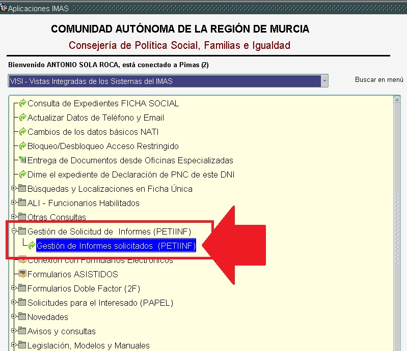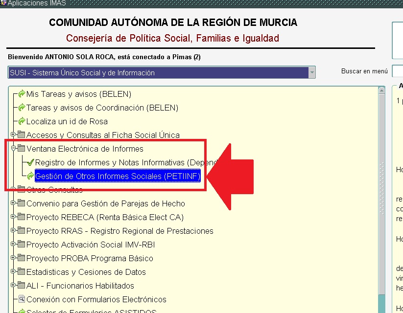 Desde SUSI accederemos: