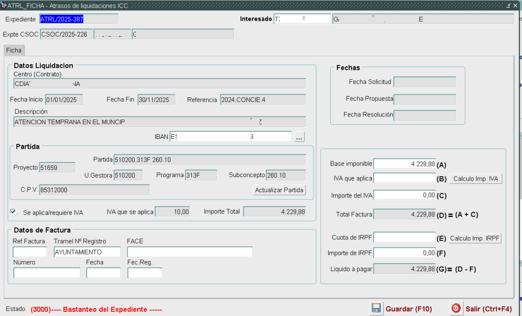 En este caso nos centraremos en el primer tipo de actuación, el cálculo de estos importes y su pago con cargo al ejercicio actual, expedientes ATRL que corresponden a una gestión globalizada por año de atrasos, expedientes RATR, y cuya gestión se realiza parte en la plataforma ICC-SANSONET encargada de las liquidaciones mensuales de las estancias y servicios, y el resto en la plataforma GTS.