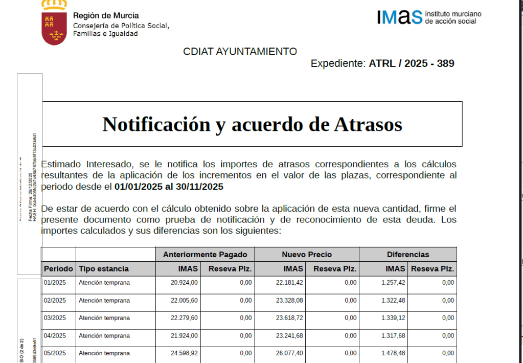 De estar de acuerdo con los cálculos efectuados la entidad obtendrá un documento de aceptación y notificación de estos atrasos, momento en el que sea crea en nuestro sistema un expediente ATRL