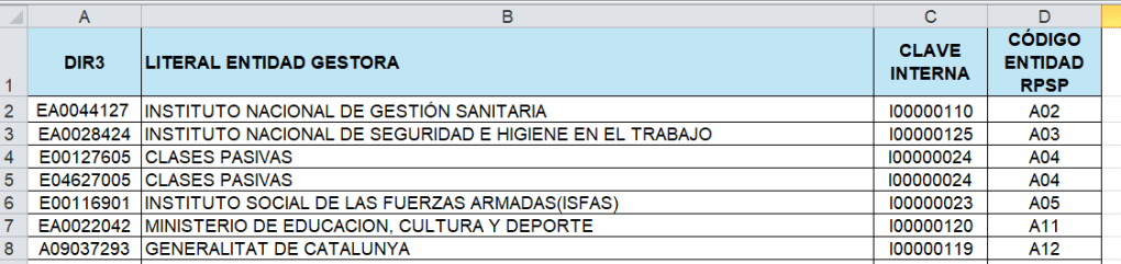 De igual manera os adjuntamos la tabla de equivalencia de entidades.