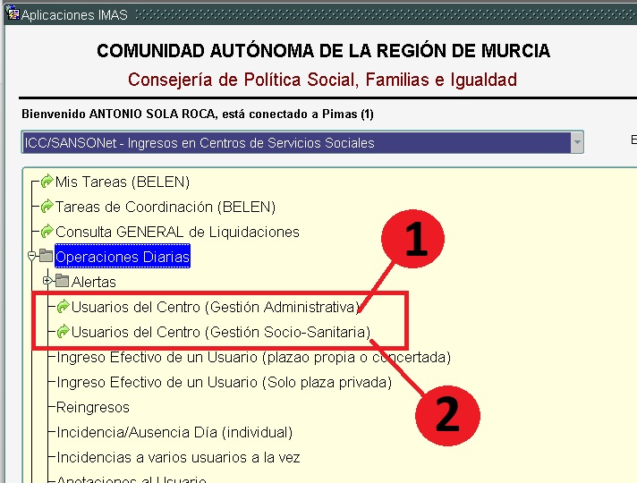Hasta ahora disponíamos de una sola opción en nuestro menú de Operaciones Diarias de usuarios del Centro, donde encontrábamos todas las funcionalidades disponibles en función de nuestros permisos y categoría laboral.
